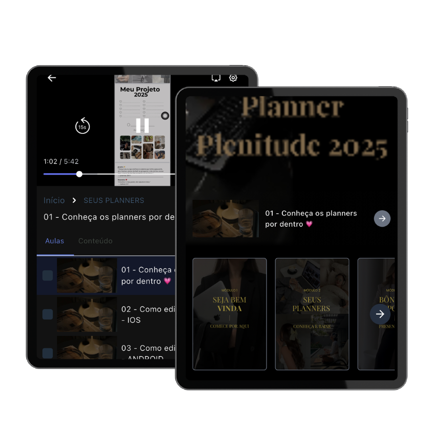 Acesso exclusivo a tutoriais simples e práticos que ensinam a usar o Planner no celular, garantindo uma experiência completa e sem complicações!